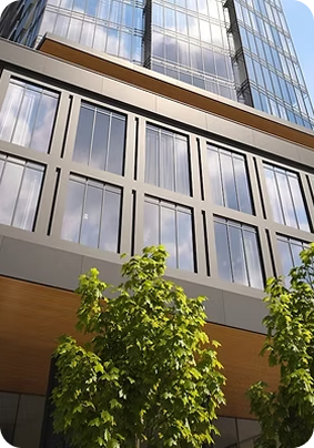 - Provides sun shading and privacy for windows and curtain walls